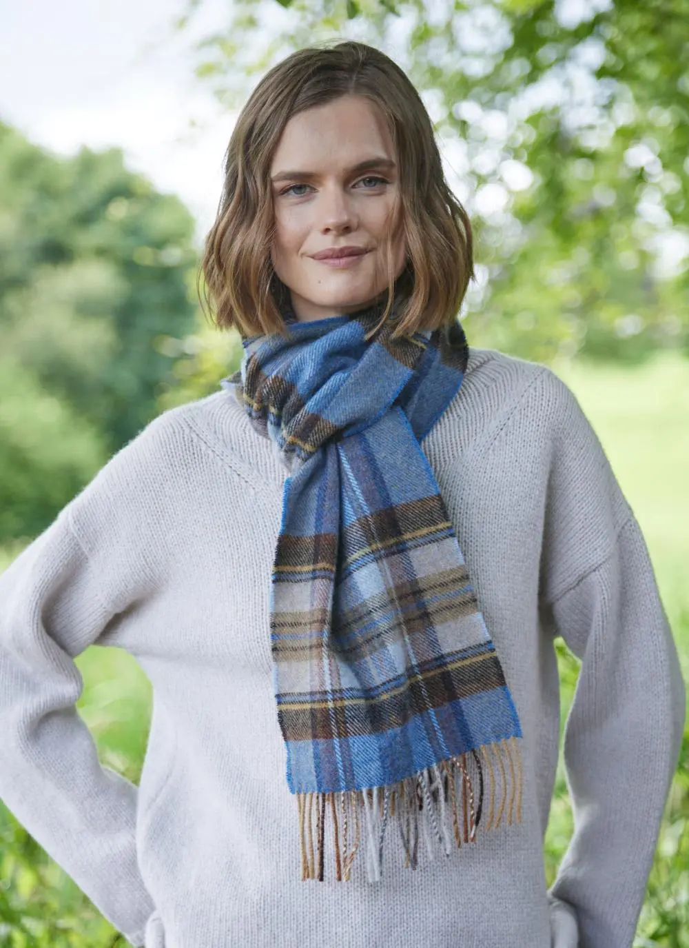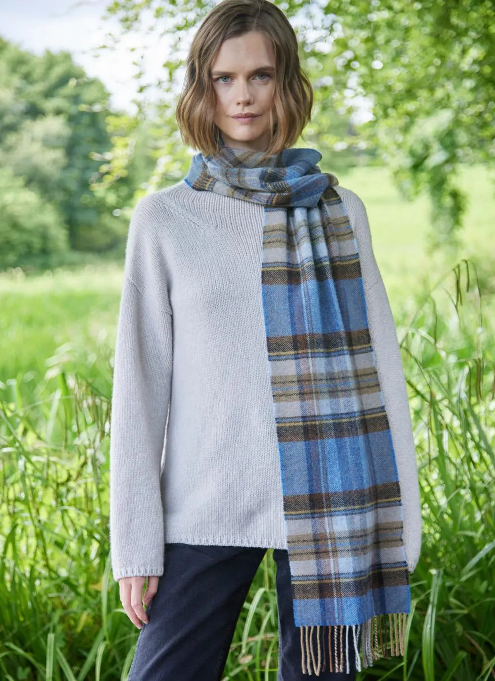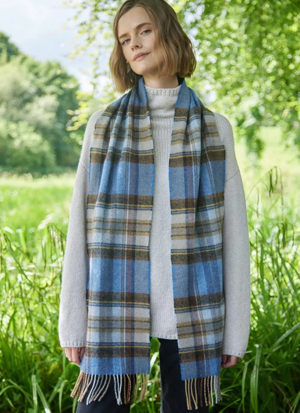 Extra Fine Merino Wool Fringed Check Scarf