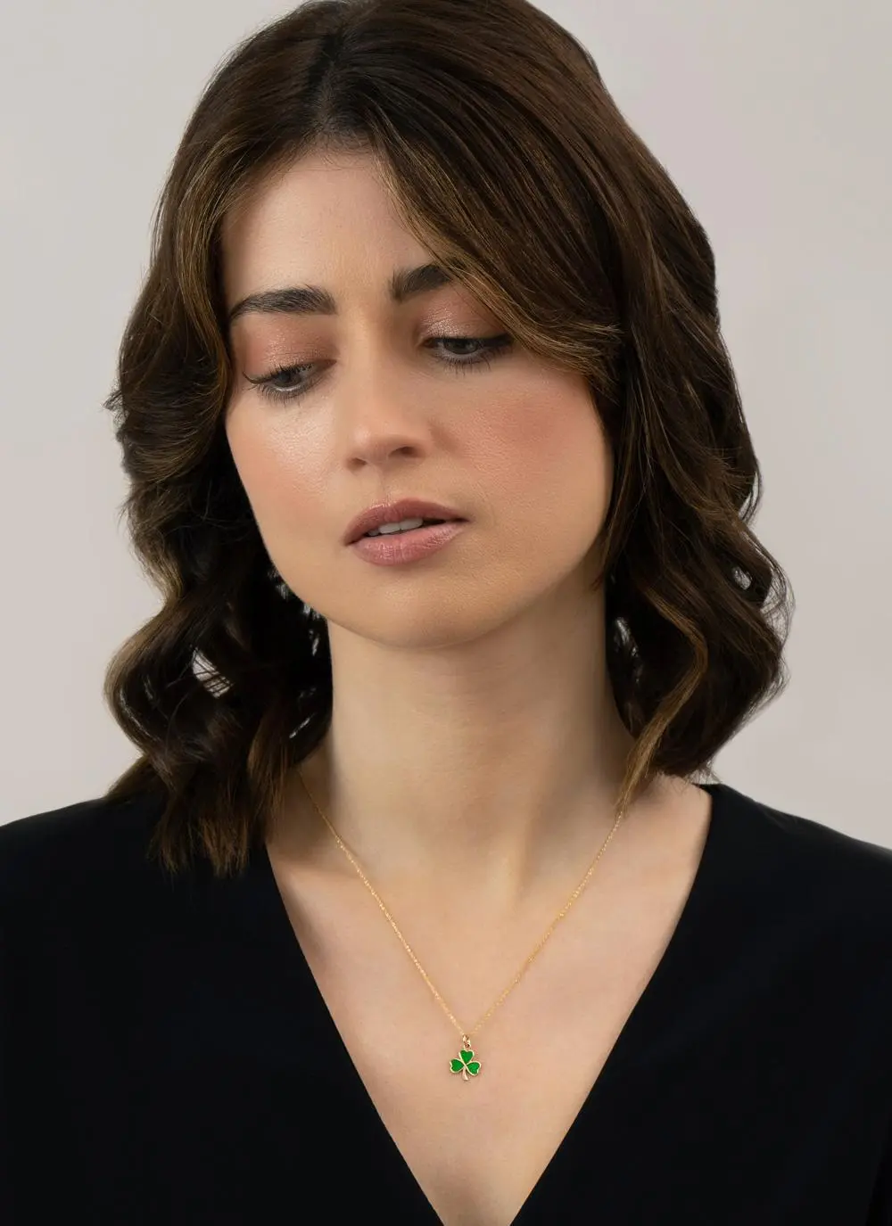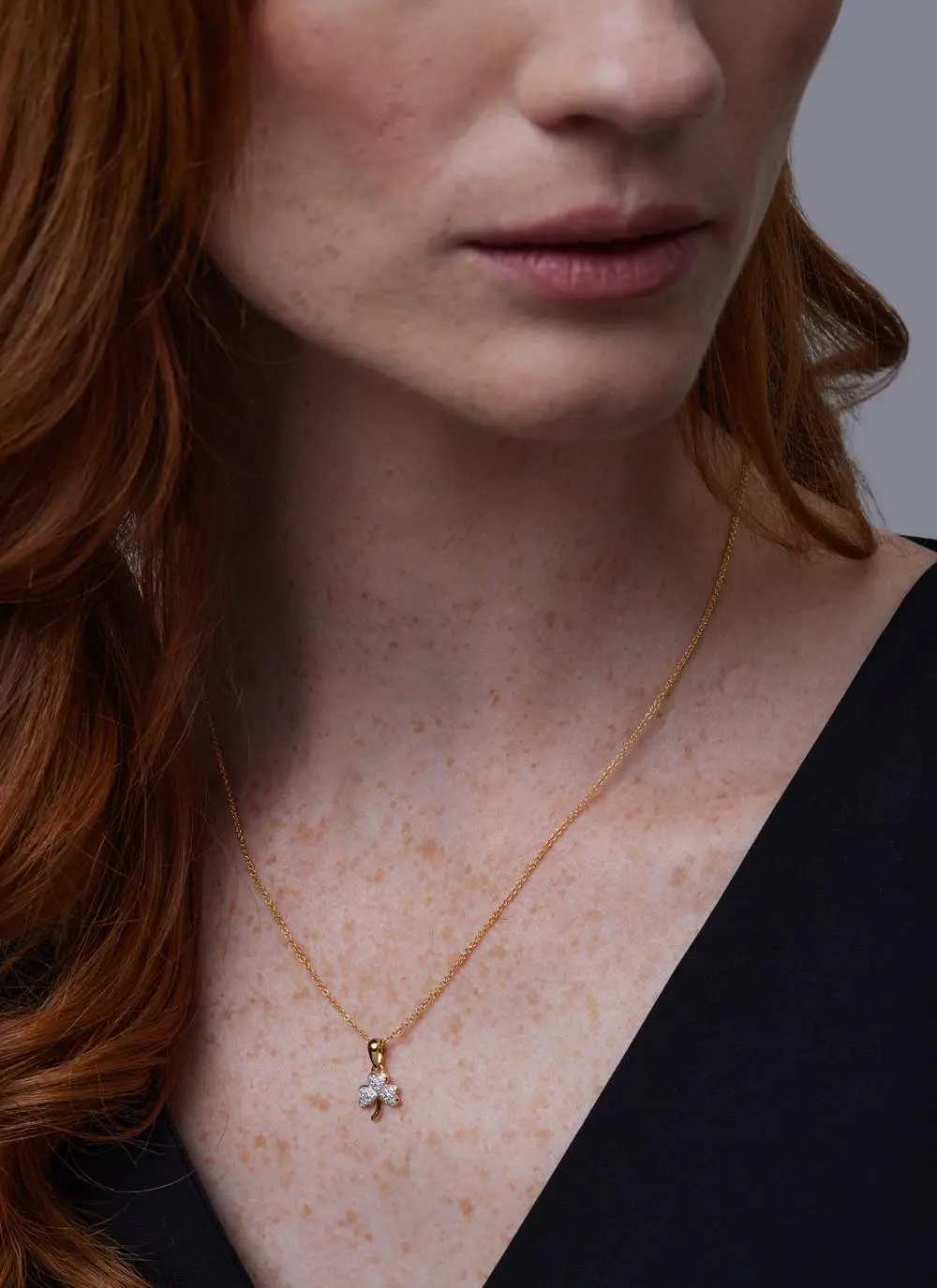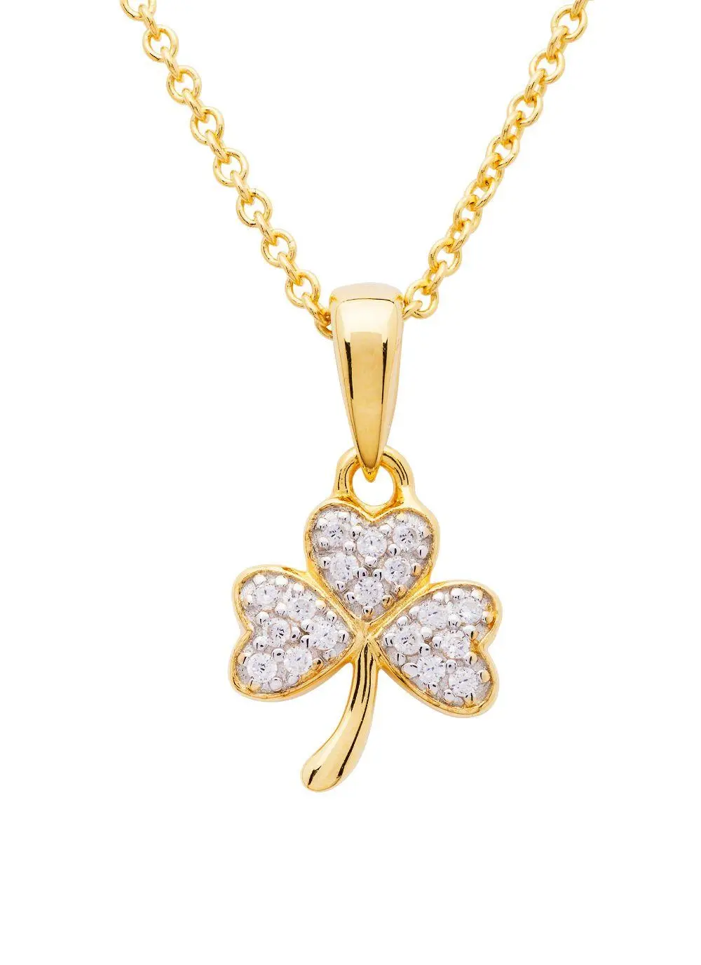 14ct Gold Vermeil Shamrock Pendant with Cubic Zirconia