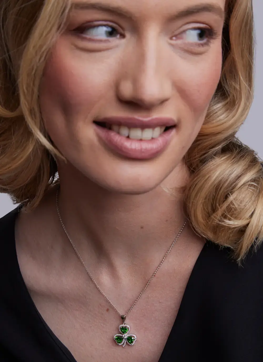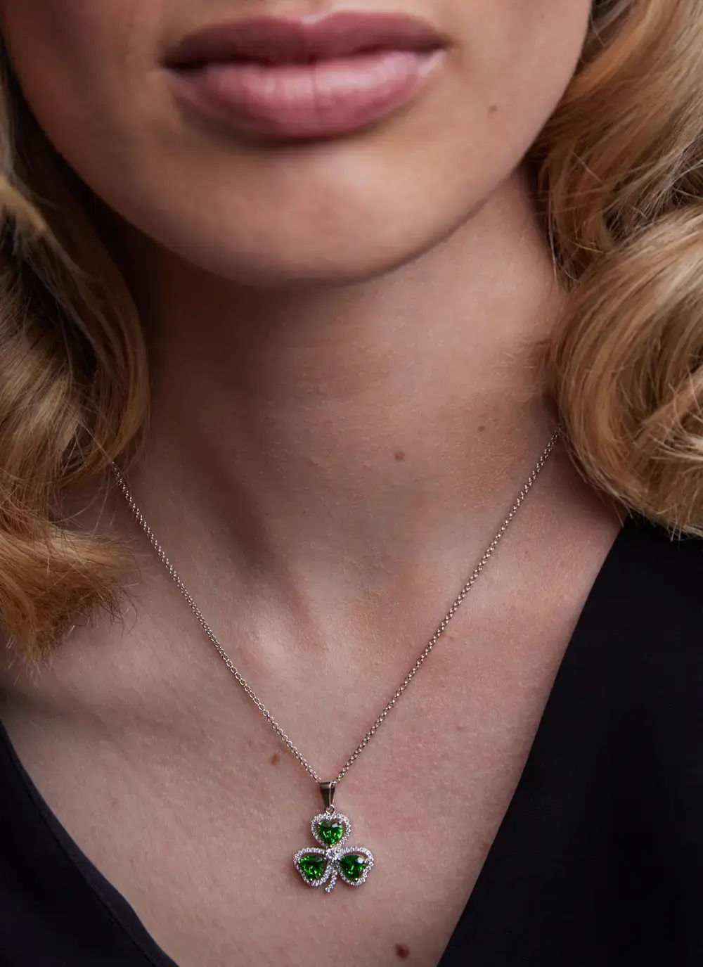 Sterling Silver & Green Cubic Zirconia Shamrock Pendant
