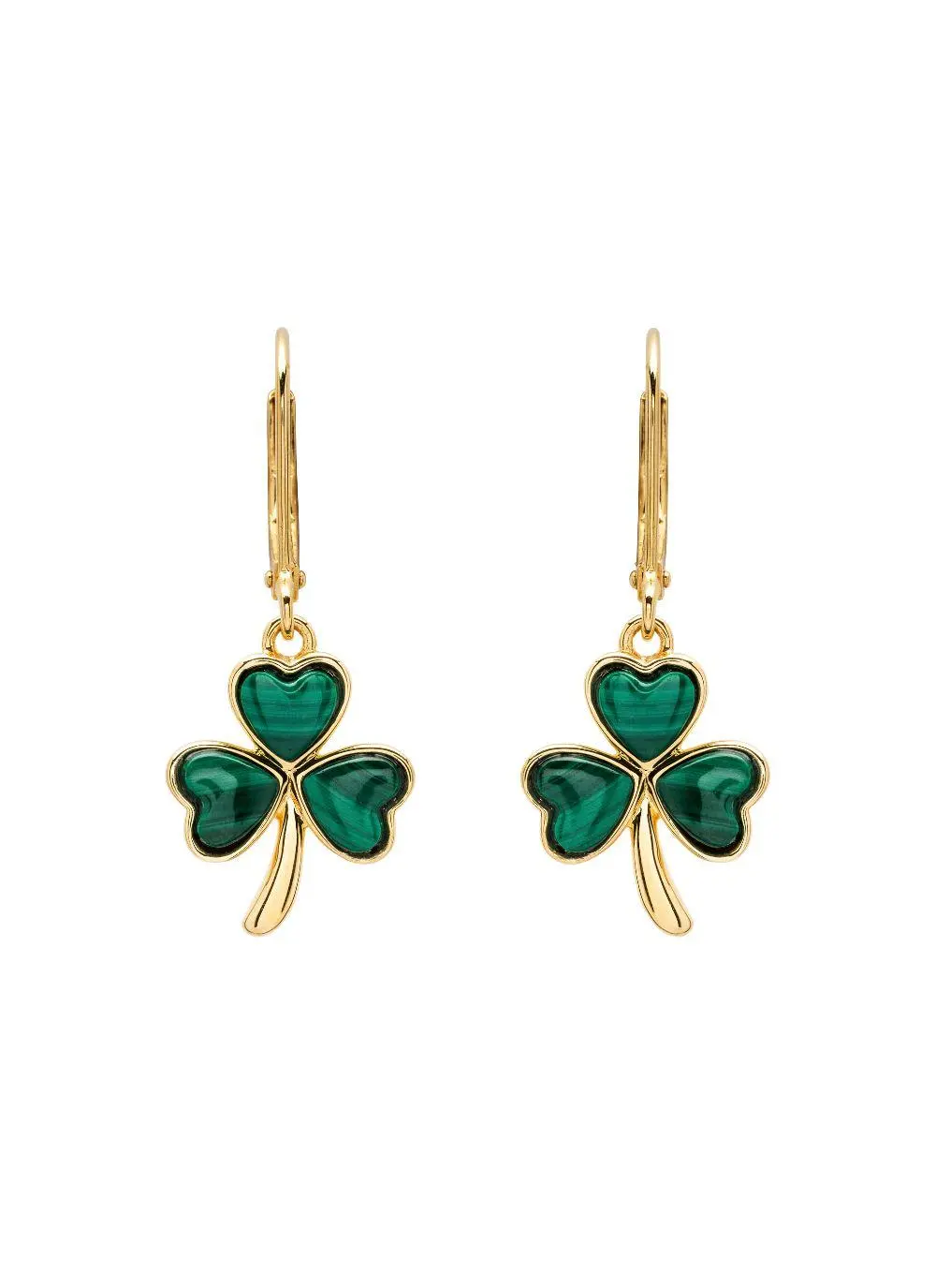 14ct Gold Vermeil Shamrock Earrings with Malachite