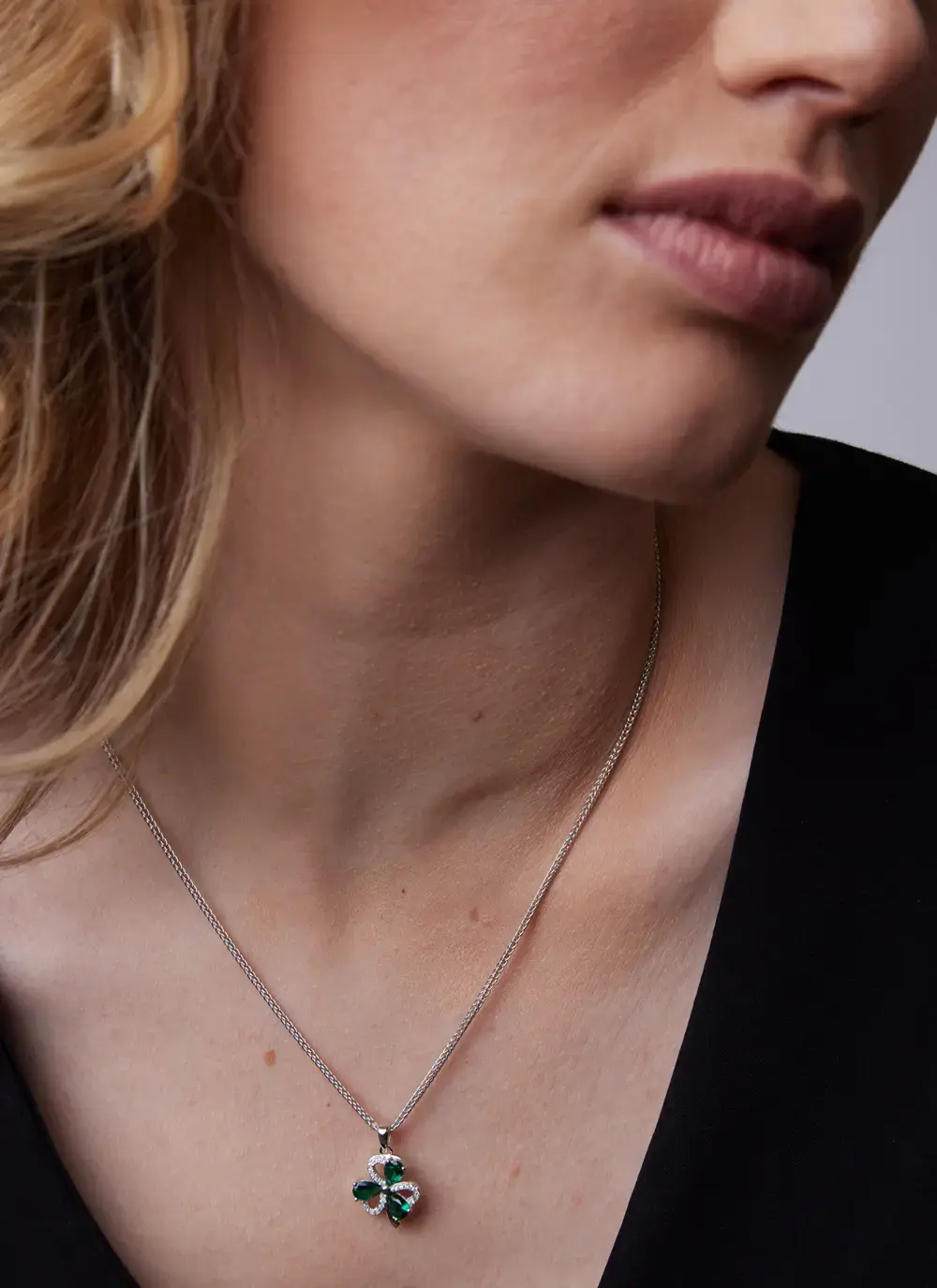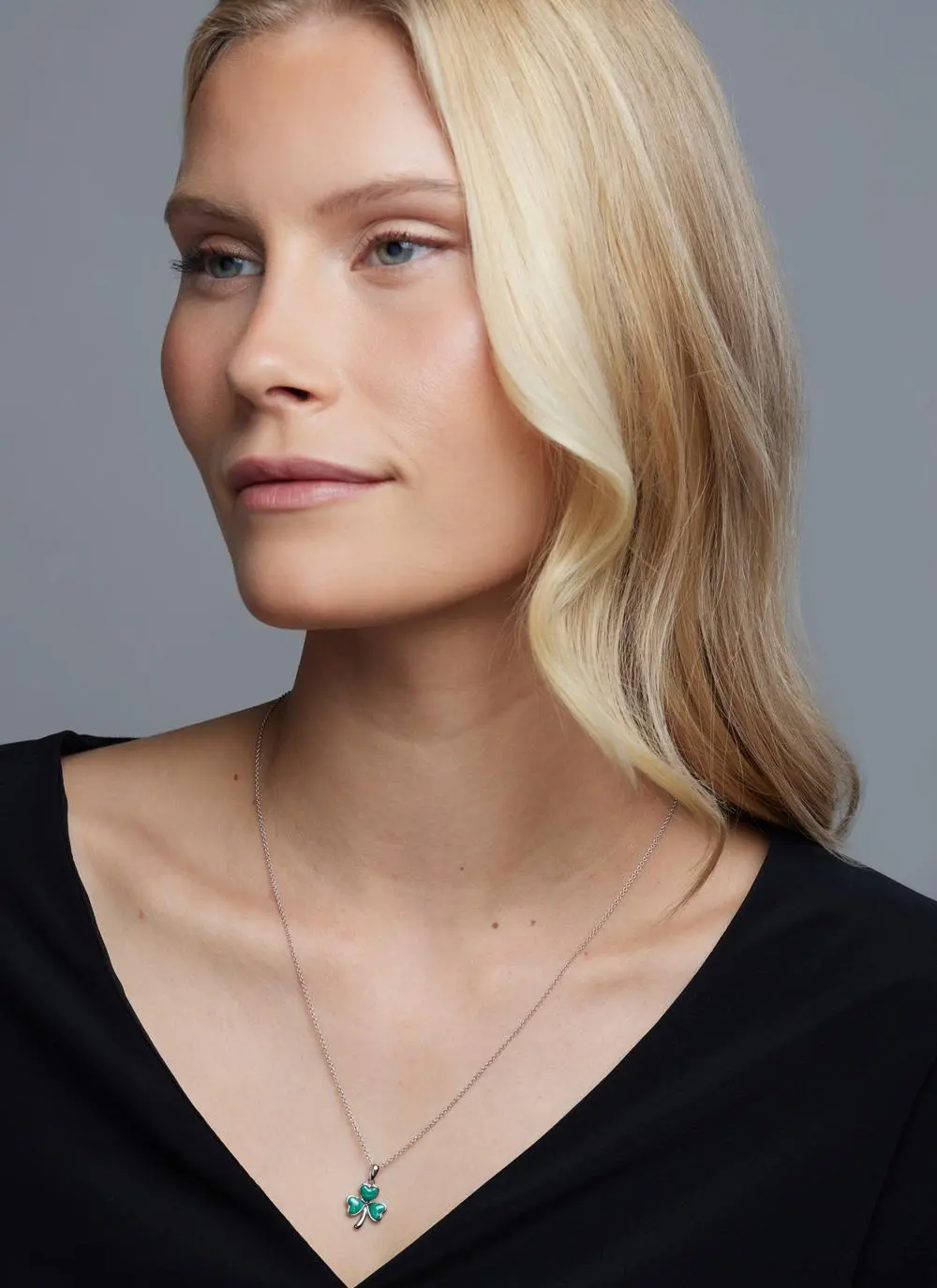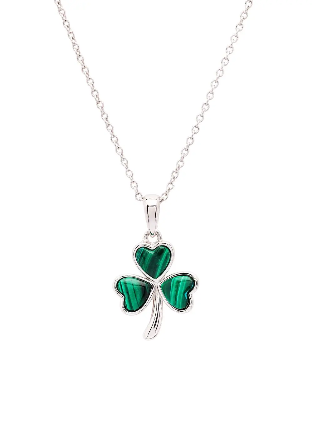 Sterling Silver & Connemara Marble Shamrock Pendant with Marcasite