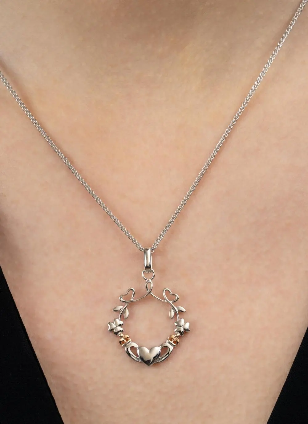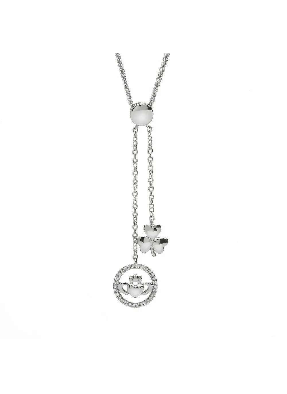 Shamrock & Claddagh Two-Drop Silver Pendant