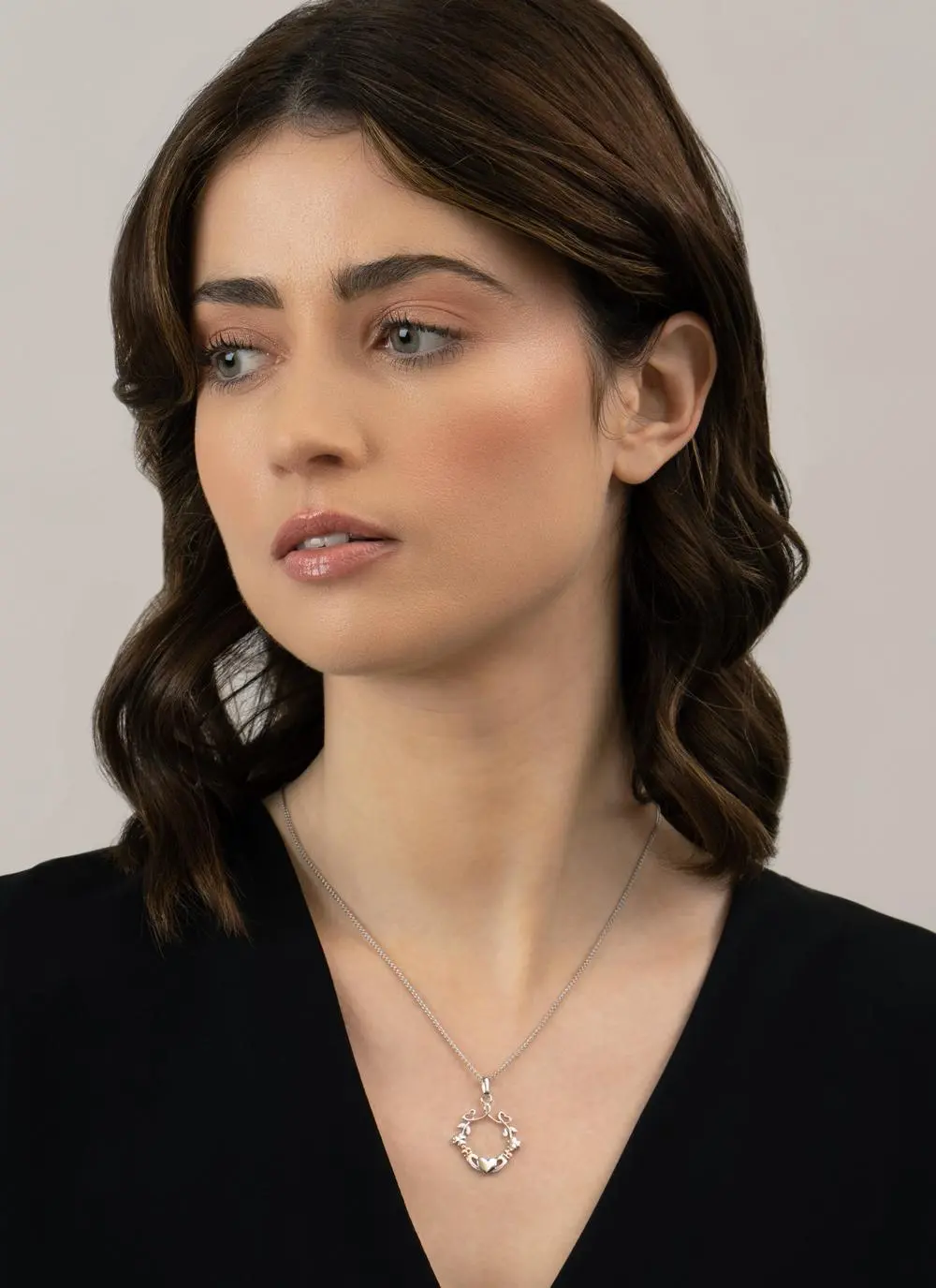 Sterling Silver Shamrock Claddagh Heart Pendant