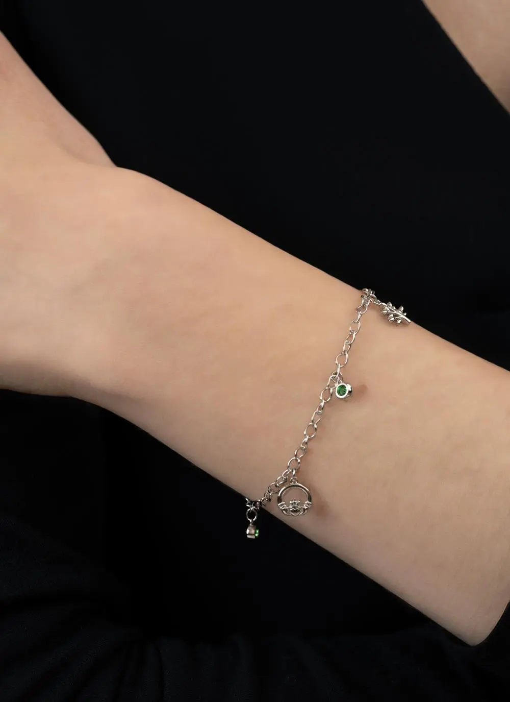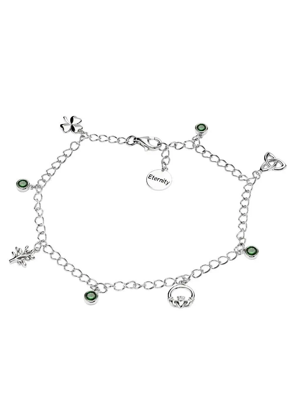 Sterling Silver Celtic Charm Bracelet with Green Cubic Zirconia
