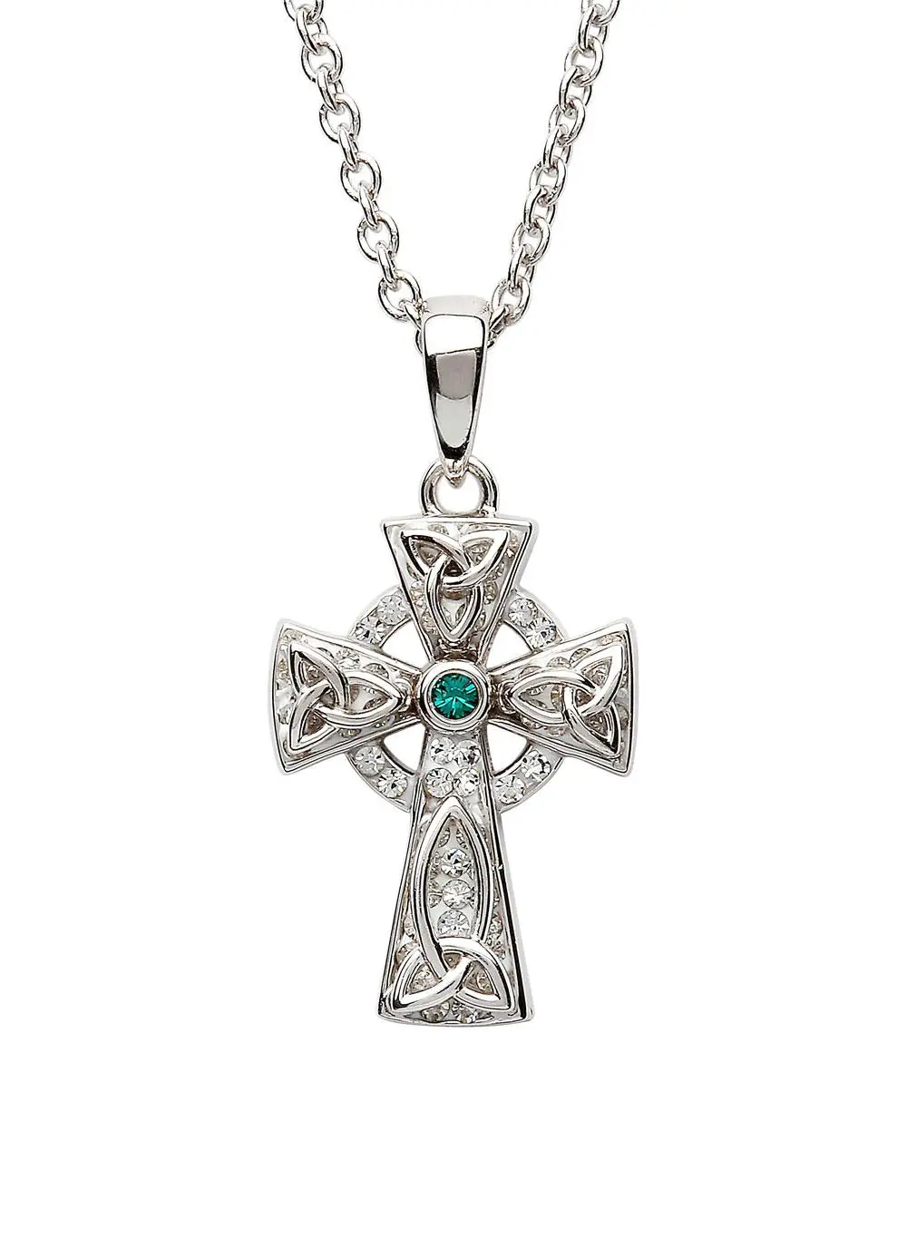 Sterling Silver Celtic Trinity Cross With Swarovski Crystals