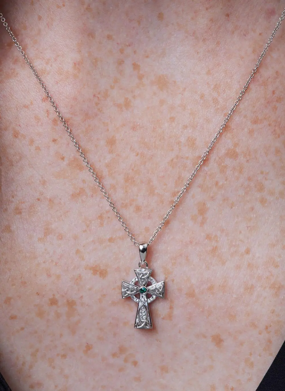 Sterling Silver Trinity Knot Celtic Cross with Swarovski Crystals