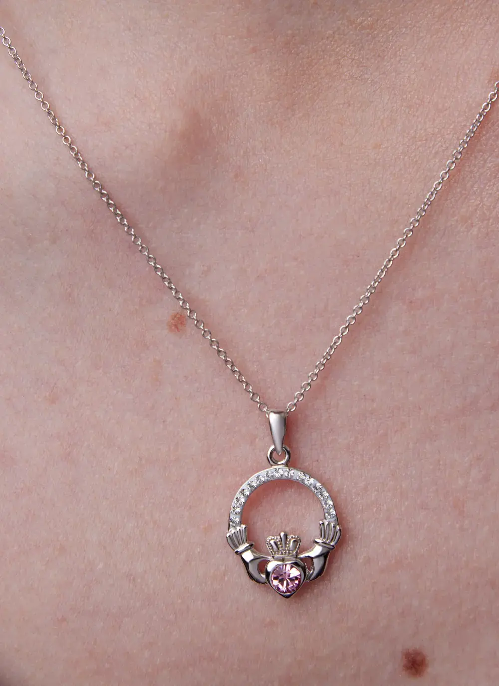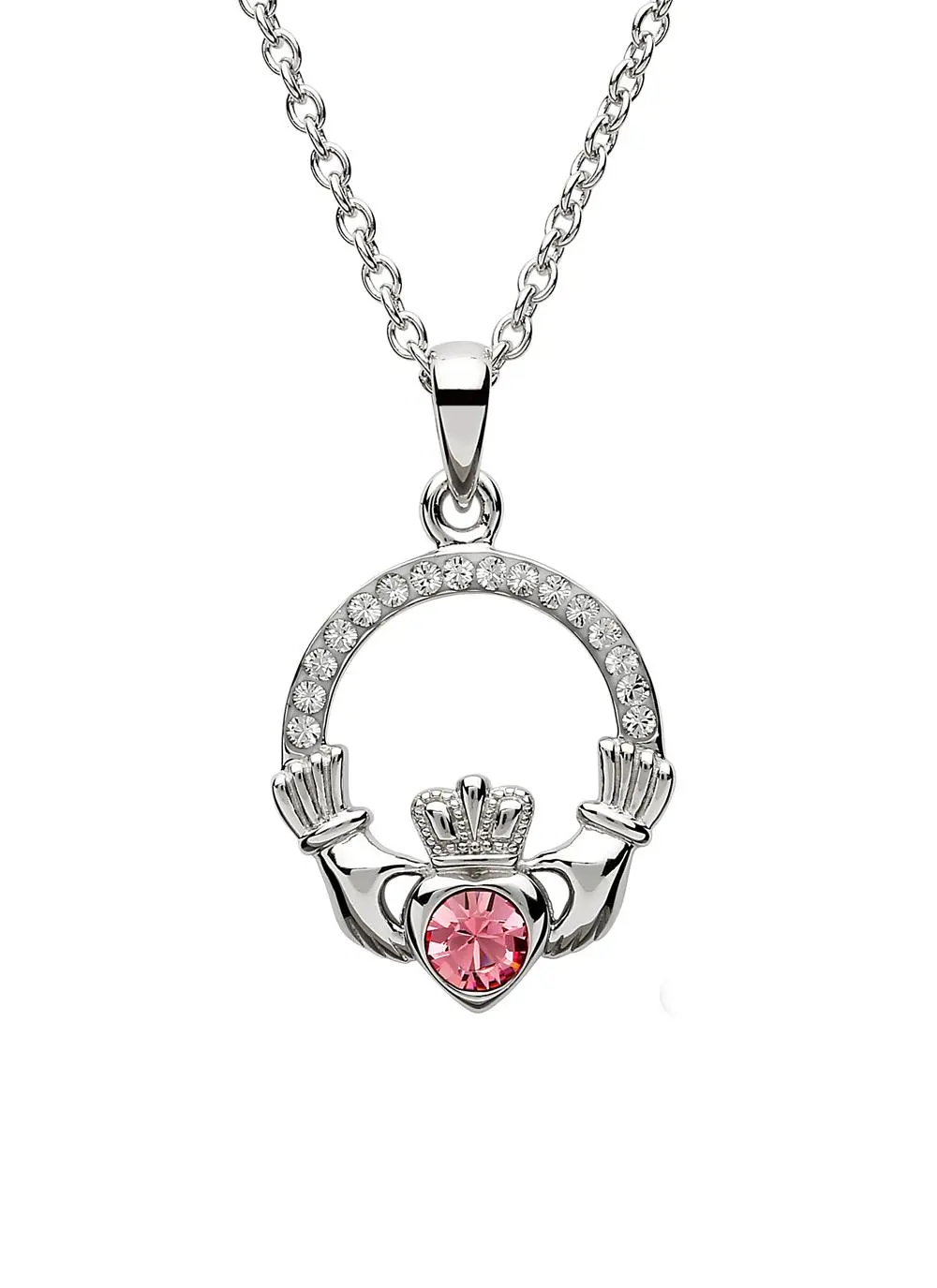 Claddagh Birthstone Pendant With Swarovski Crystals - October