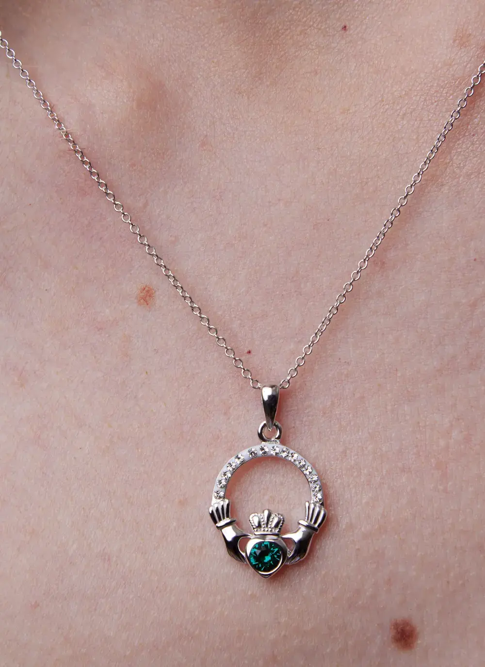 Claddagh Birthstone Pendant With Swarovski Crystals - May
