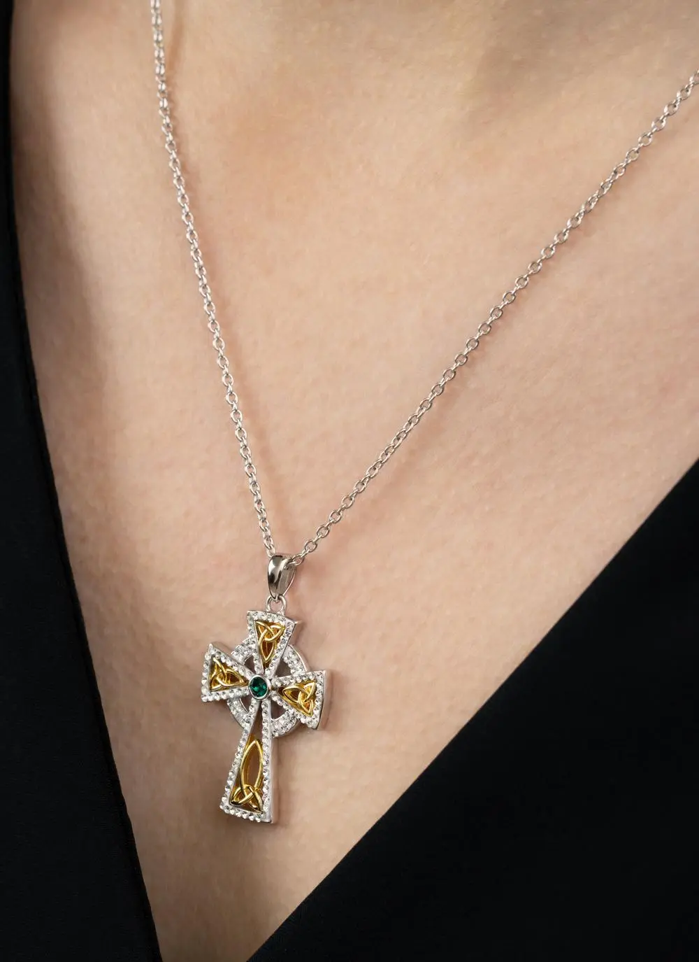 Celtic Cross Gold Plated Pendant Embellished With Swarovski Crystals