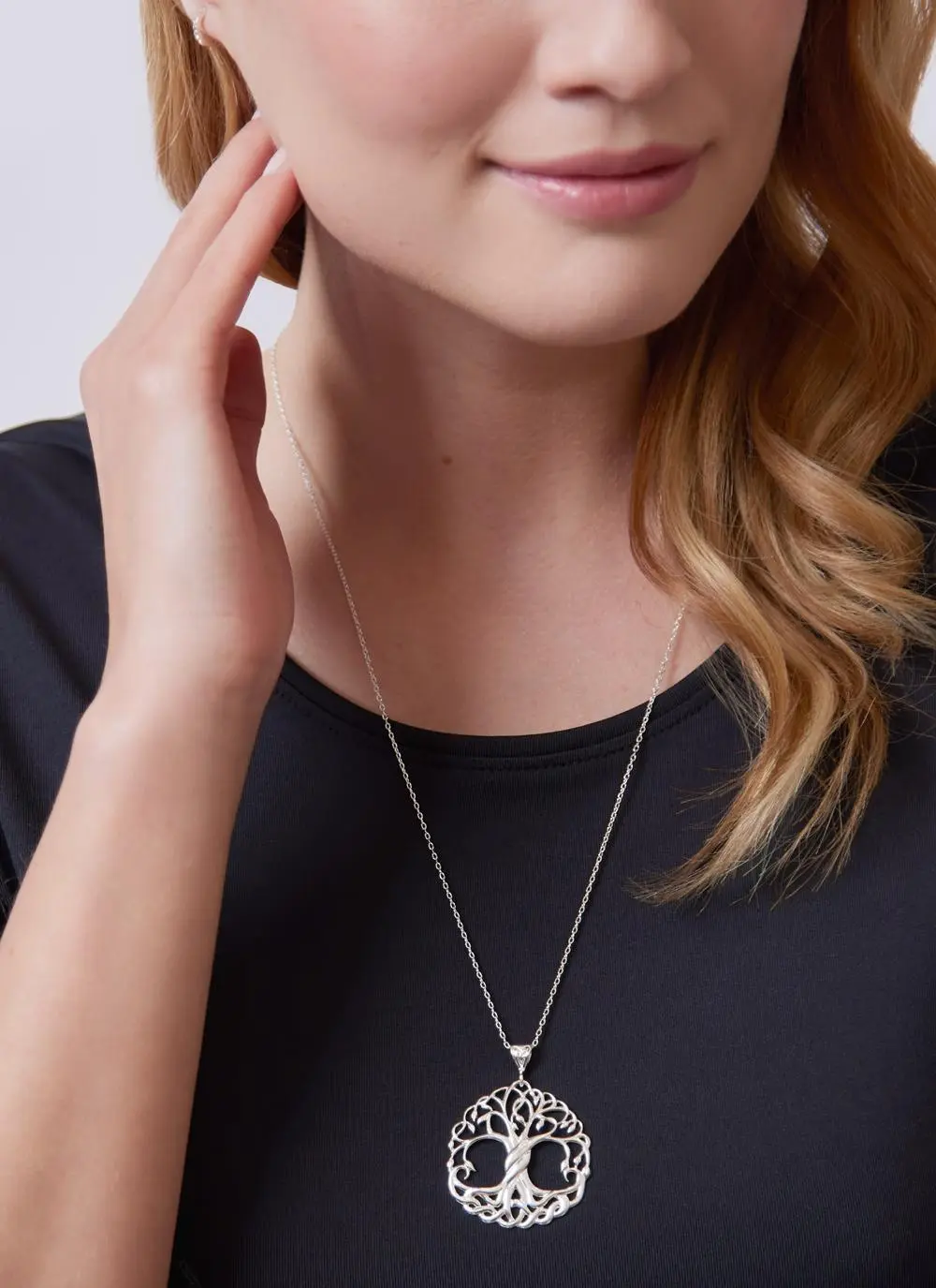 Sterling Silver & 10ct Gold Diamond Tree of Life Pendant