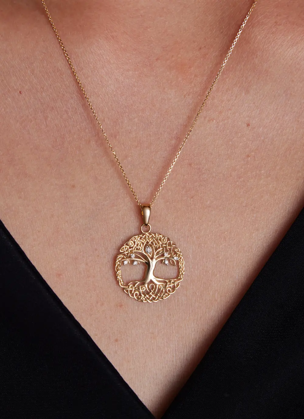 14ct Gold & Lab Diamond Tree of Life Pendant