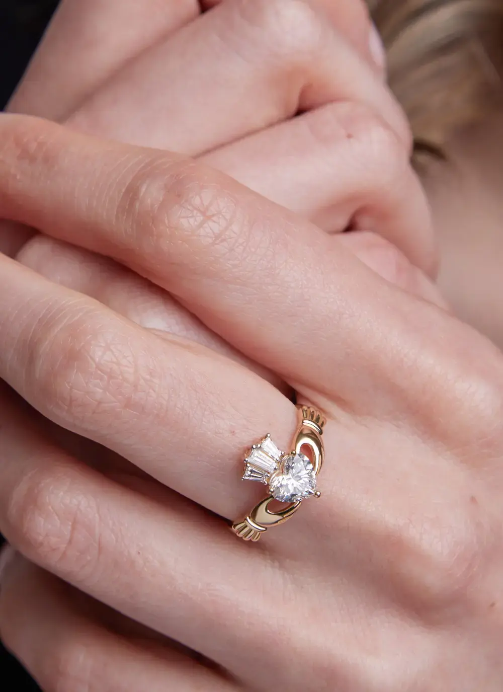 14K Claddagh Ring With Lab Diamond