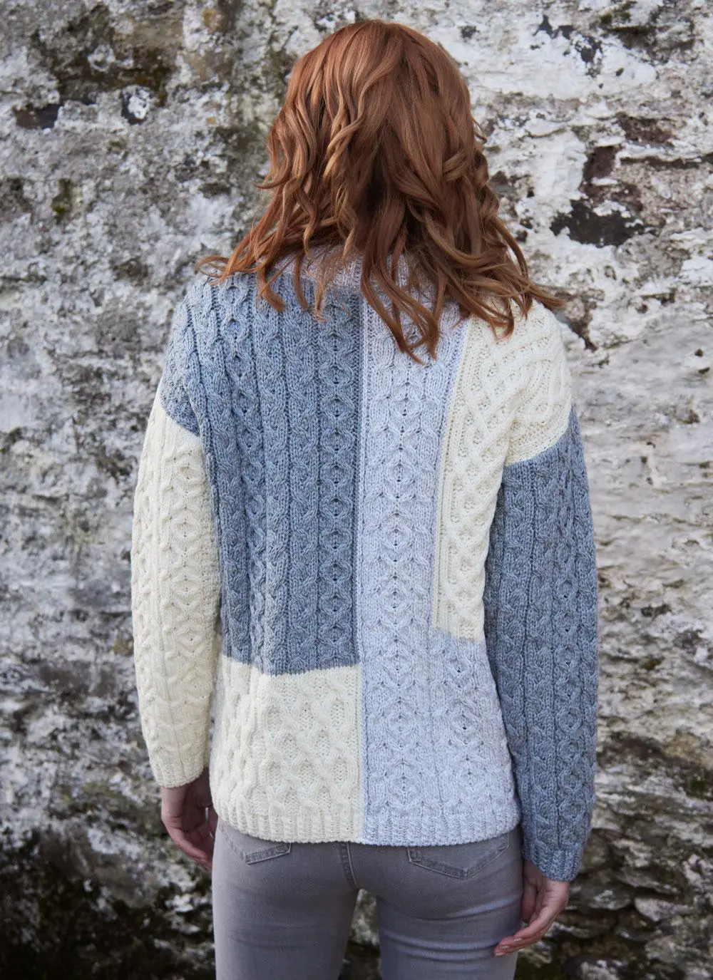 Three Color Patchwork Aran Sweater