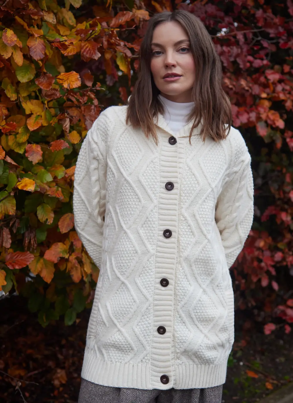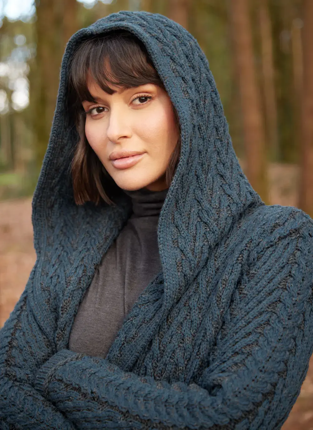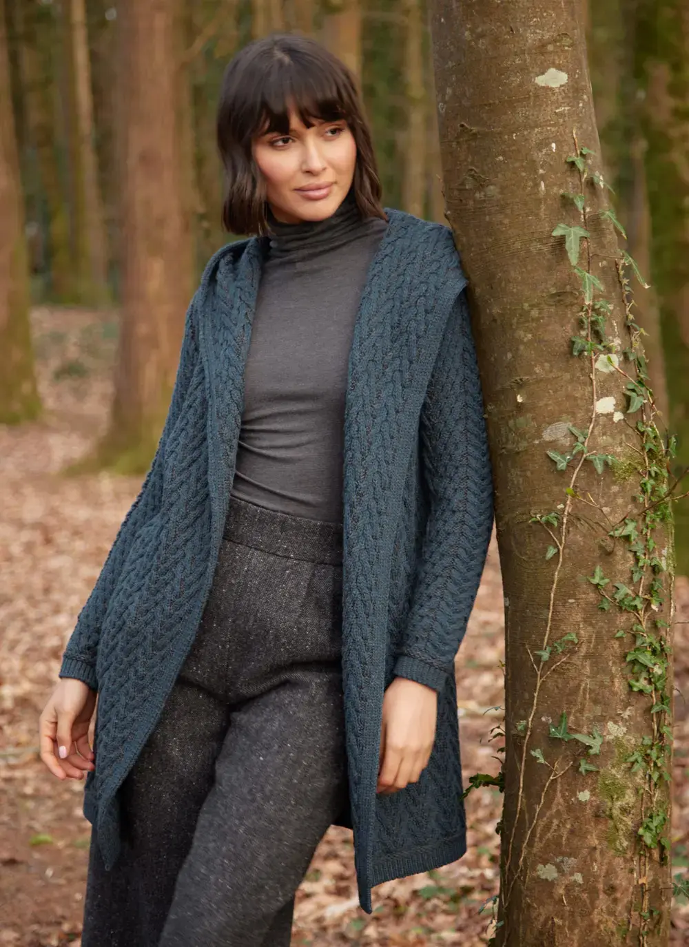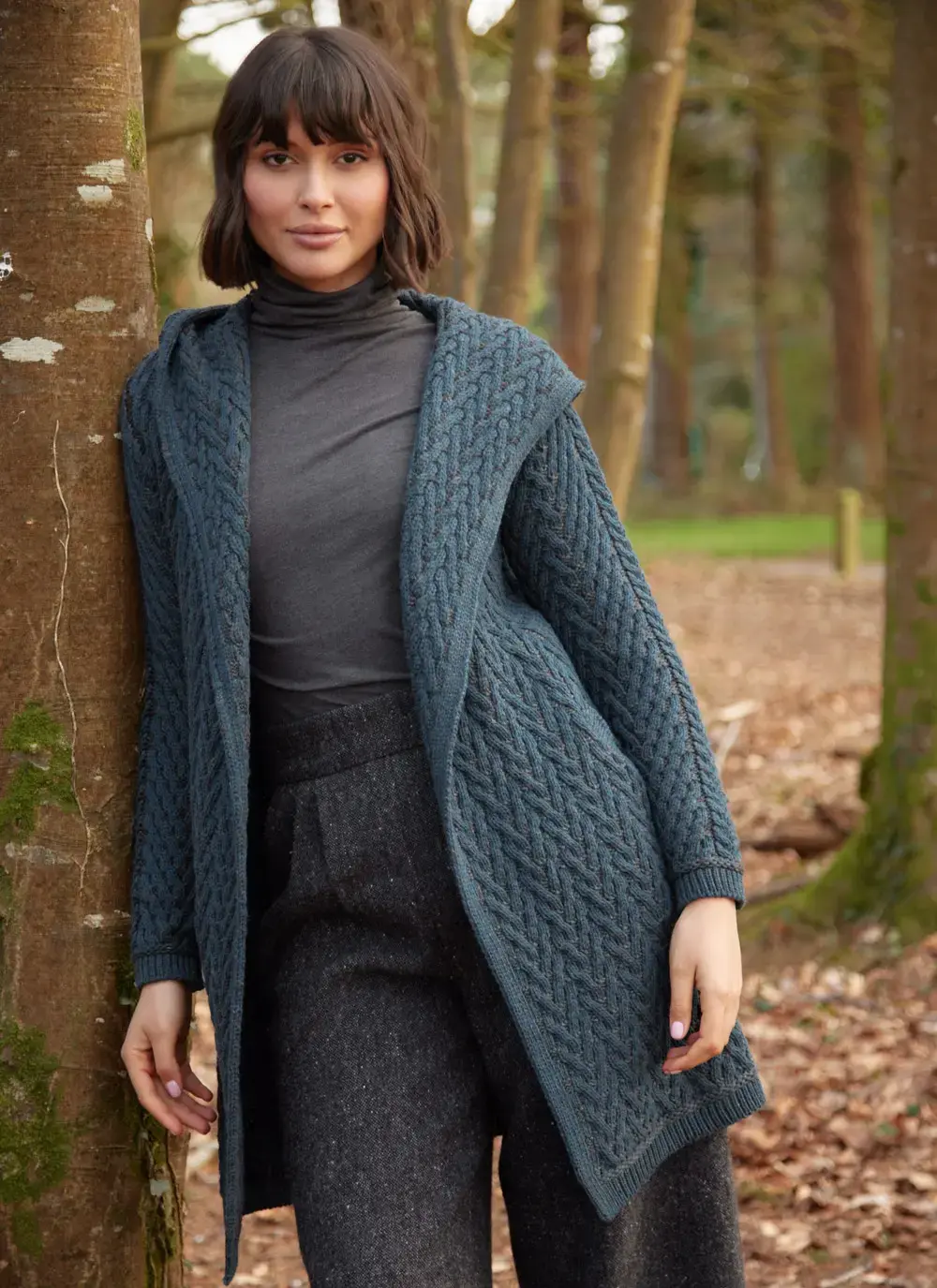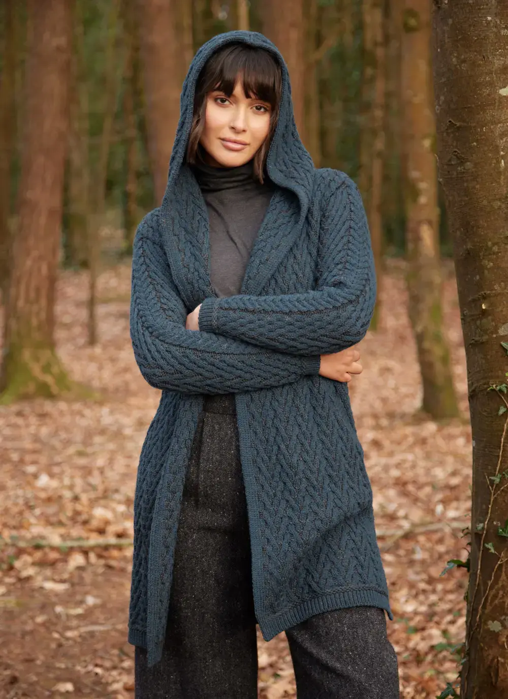Fiadh Double Layer Hooded Aran Coatigan