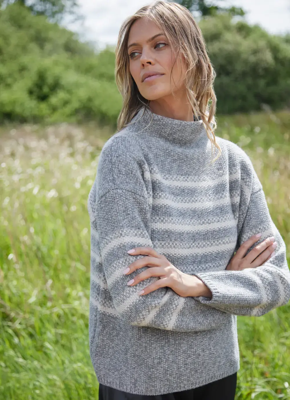 Fisherman Merino Mock Neck Sweater with Stripe