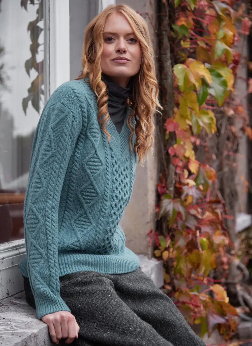 Fisherman Alpaca Eyelet Stitch Crew Neck Sweater