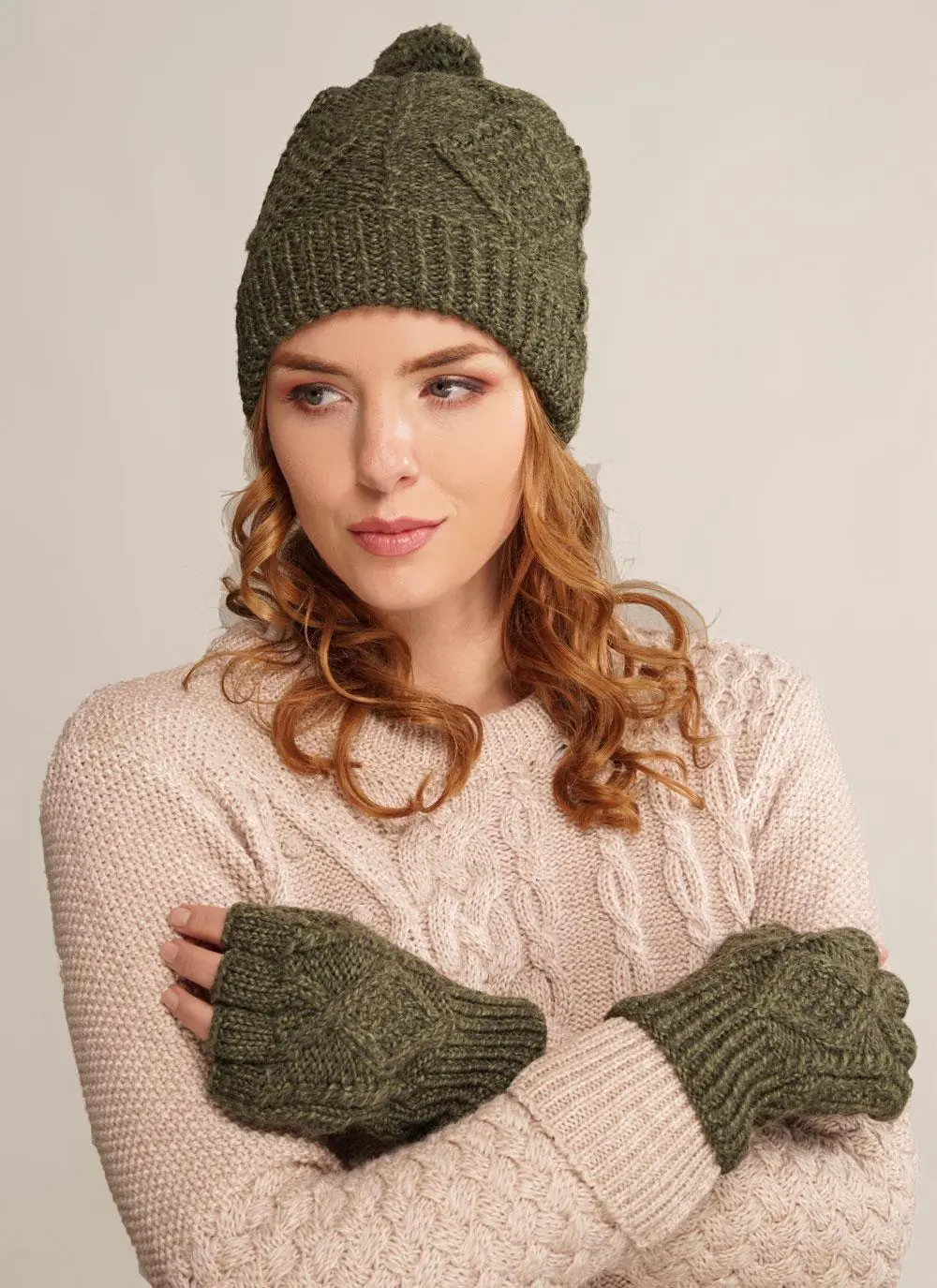 Aran Hand-Knit Fingerless Gloves