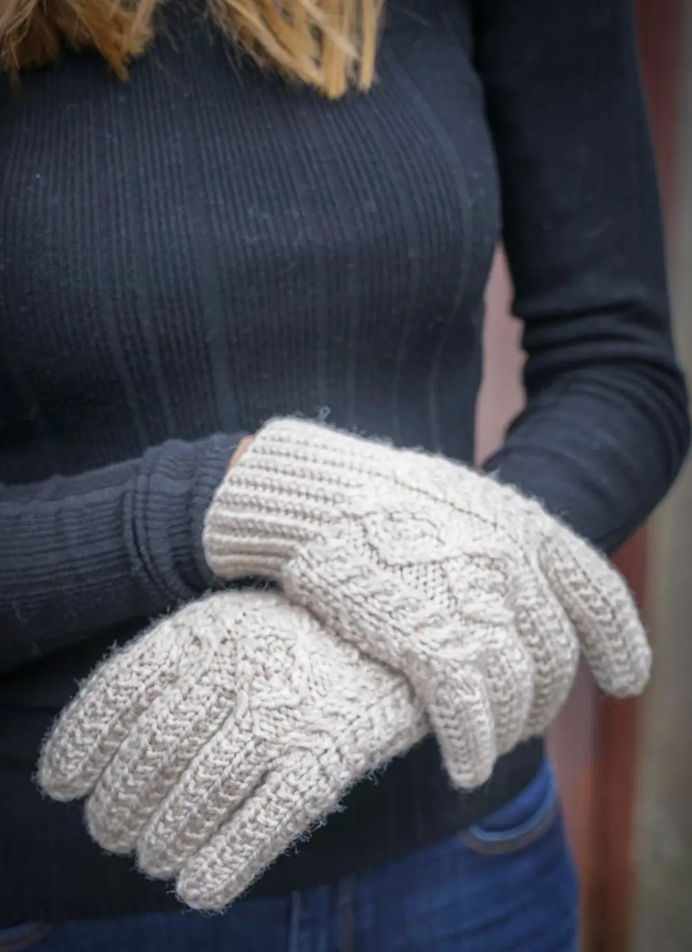 Hand-Knit Aran Gloves