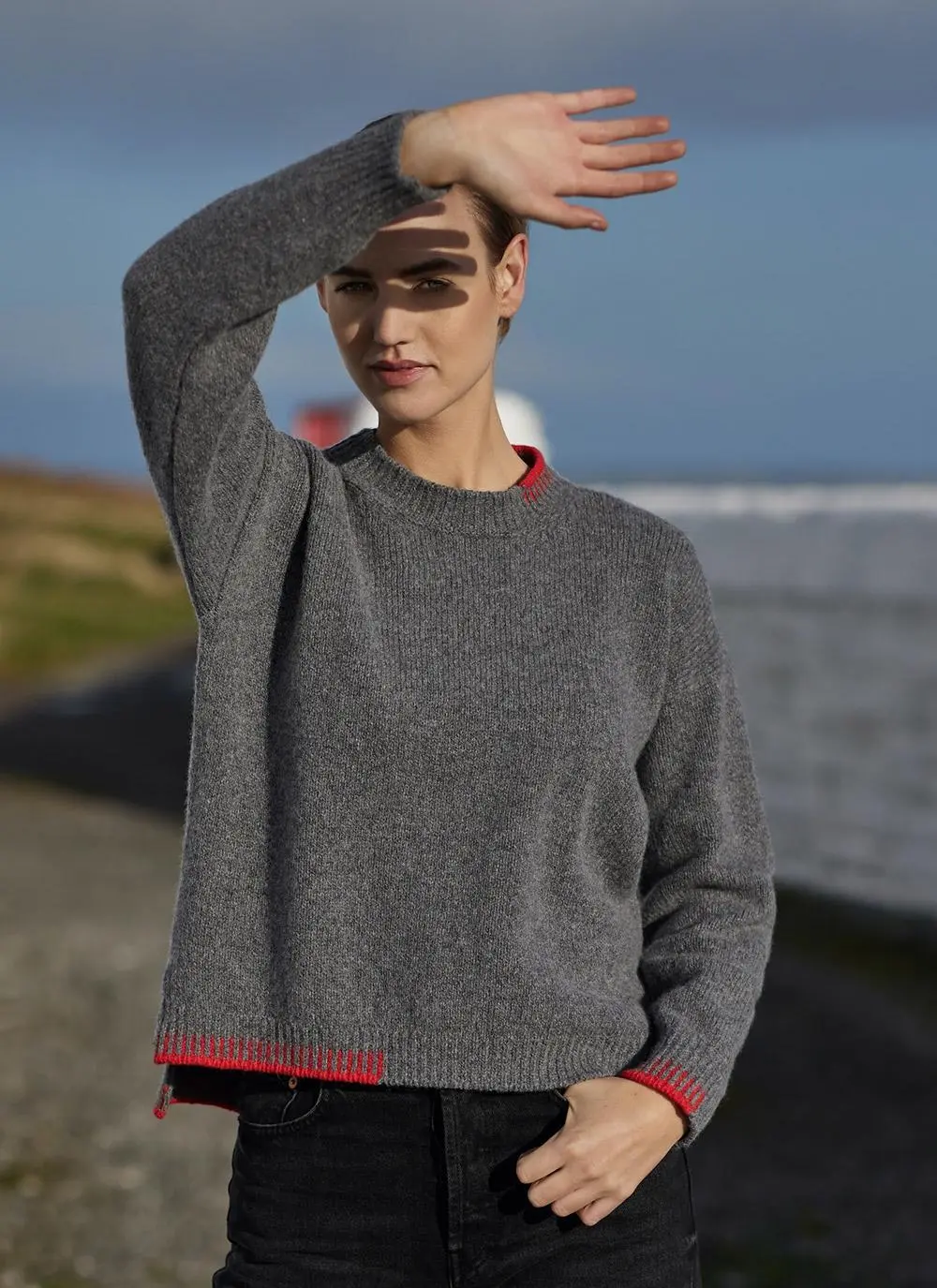 Fisherman Wool Cashmere Blanket Stitch Crew Neck Sweater