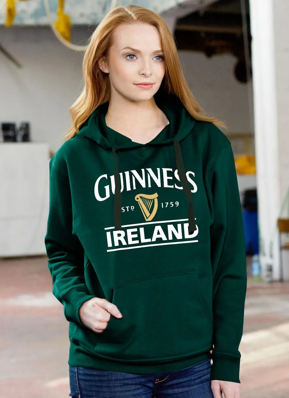 Unisex Guinness Hoodie Bottle Green