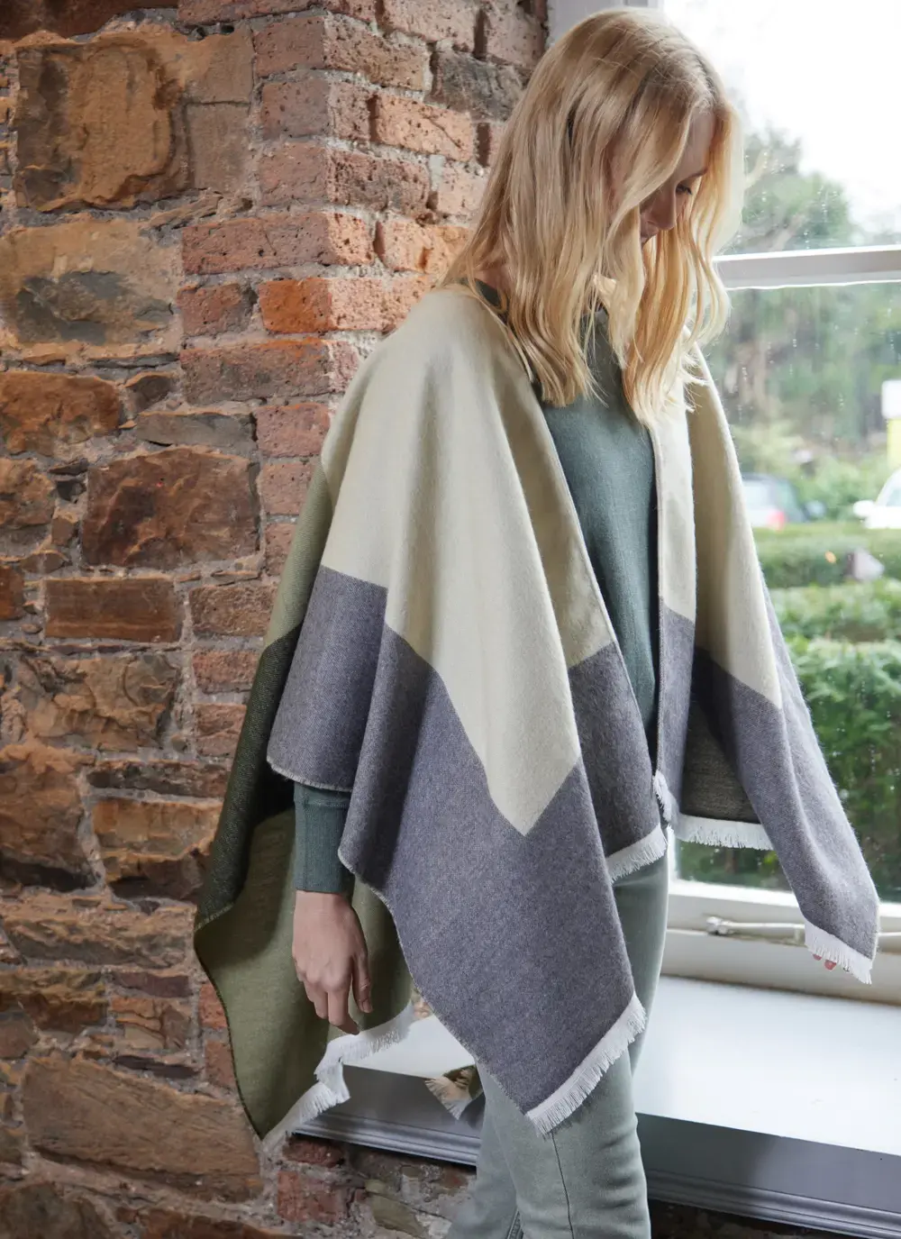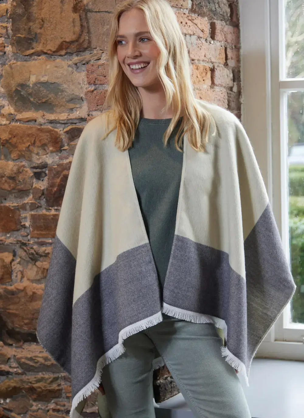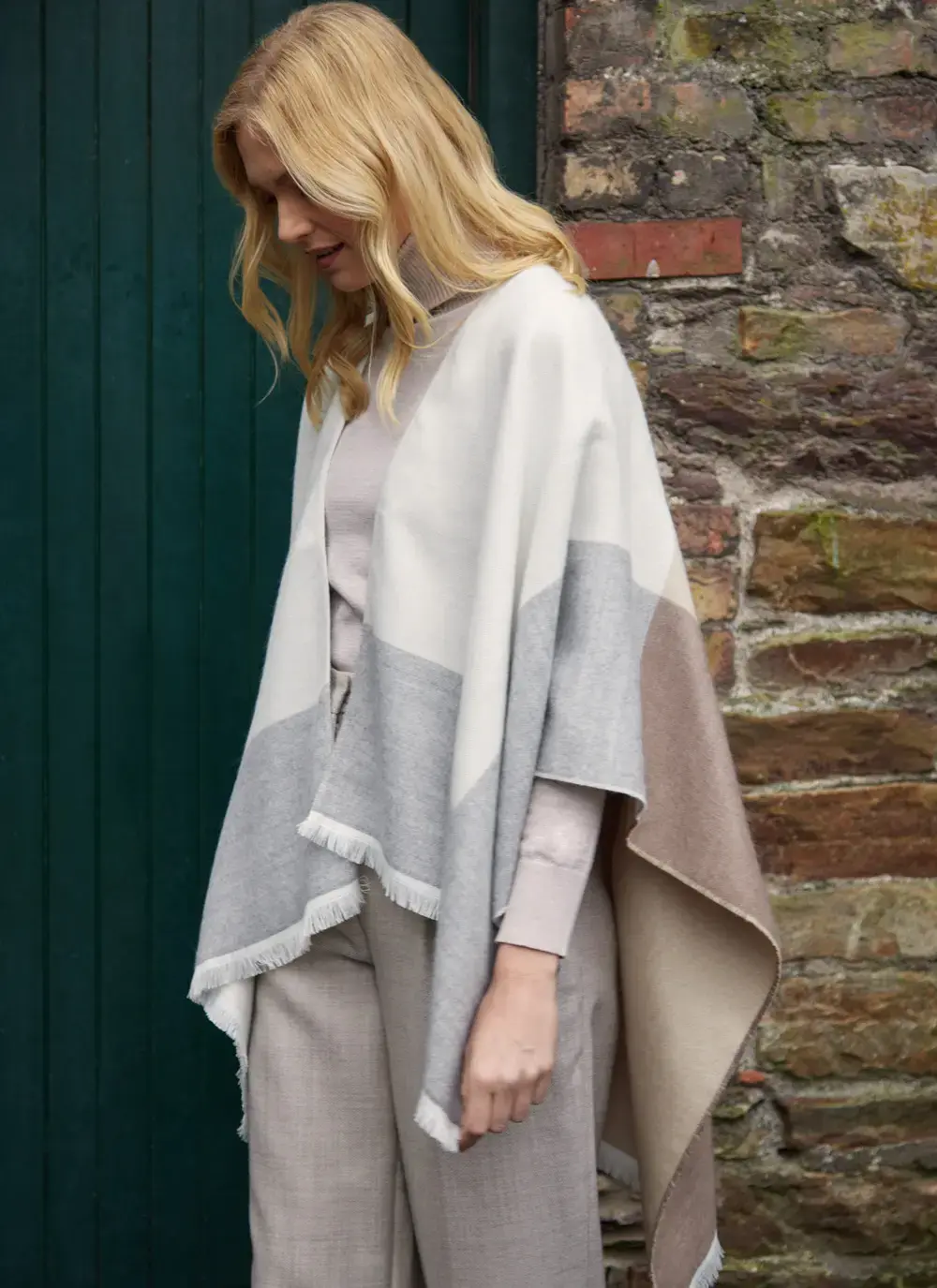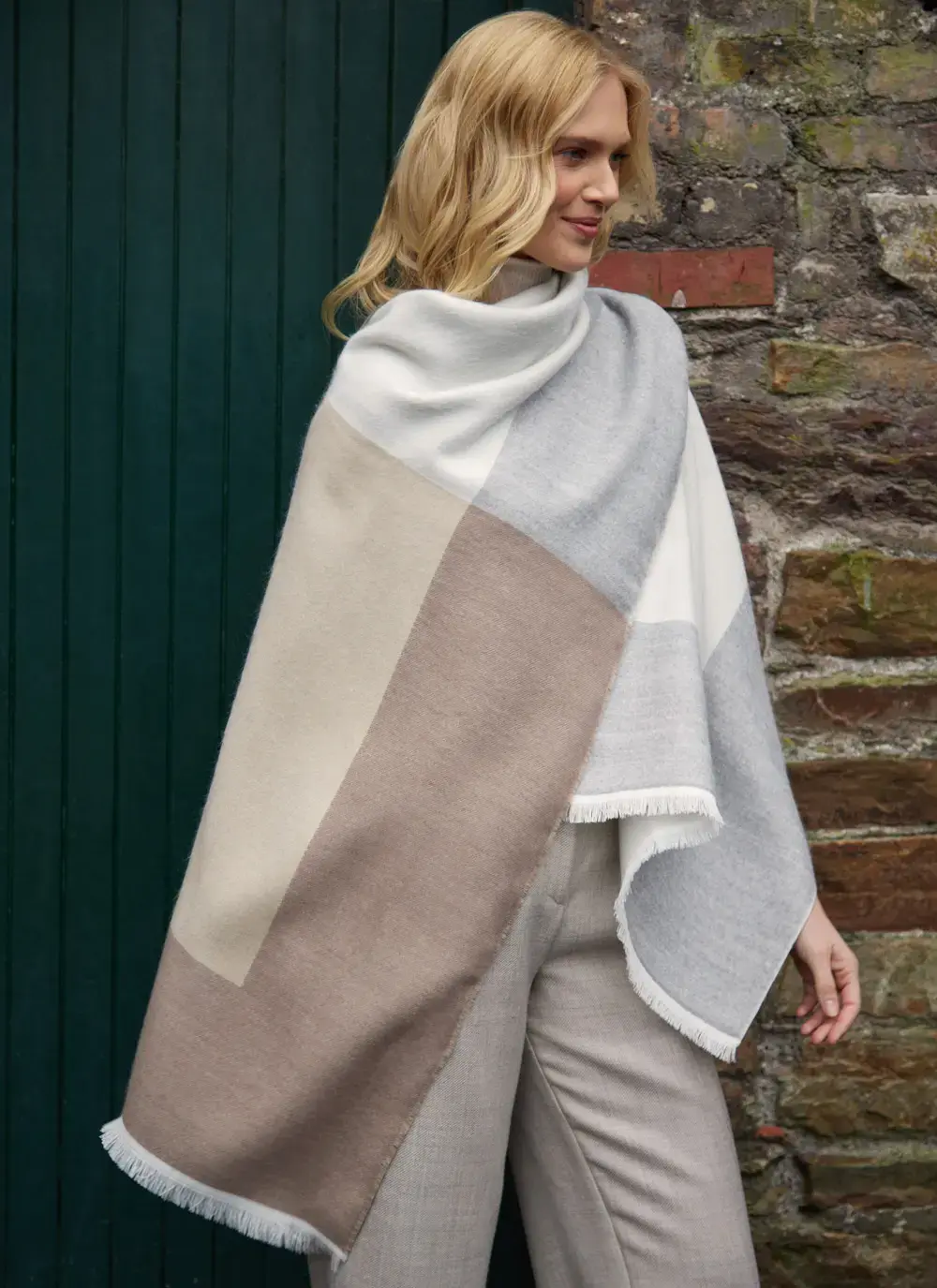 Color Block Fringed Shawl