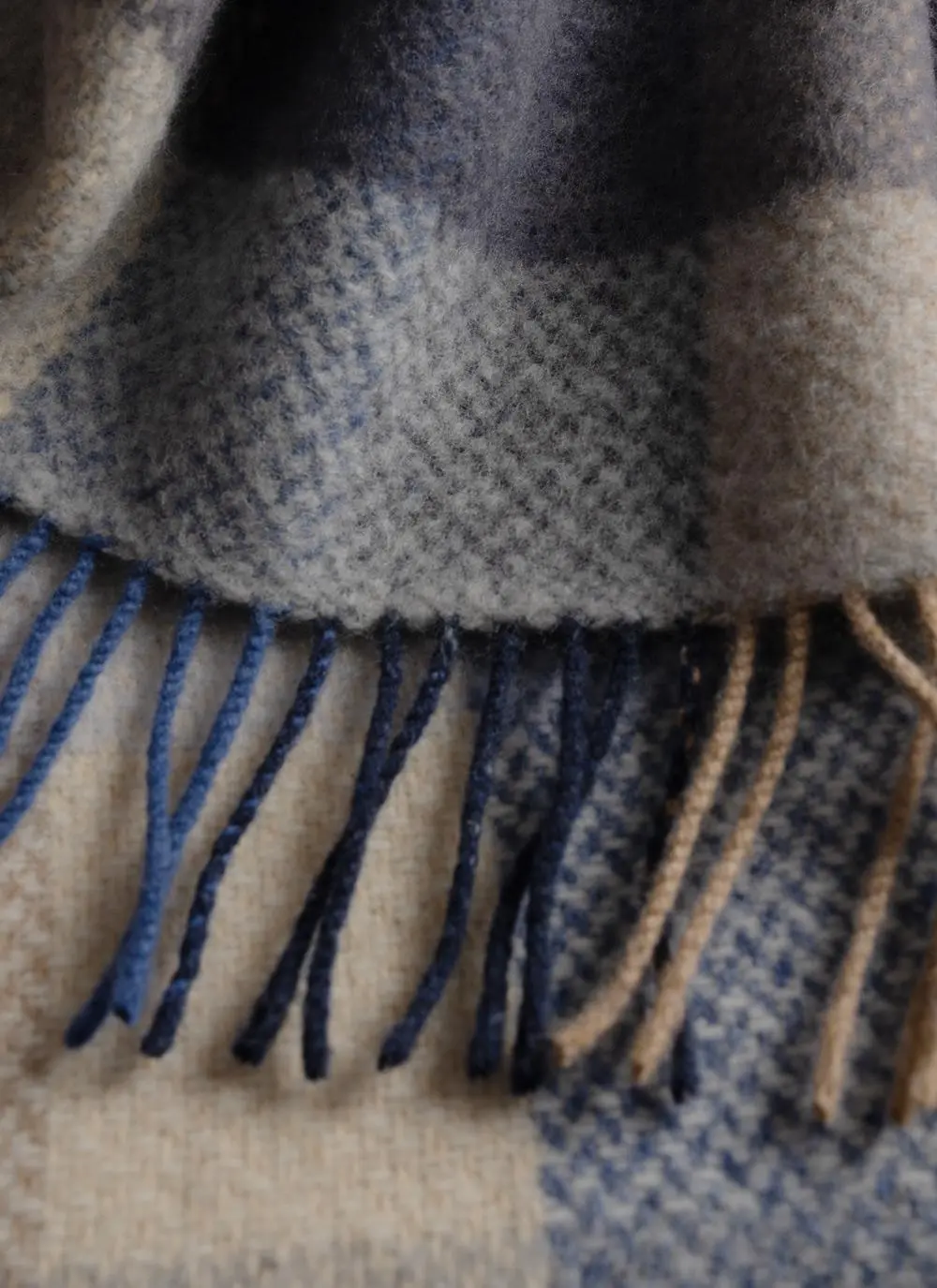 Ocean Check Herringbone Wool Cashmere Throw