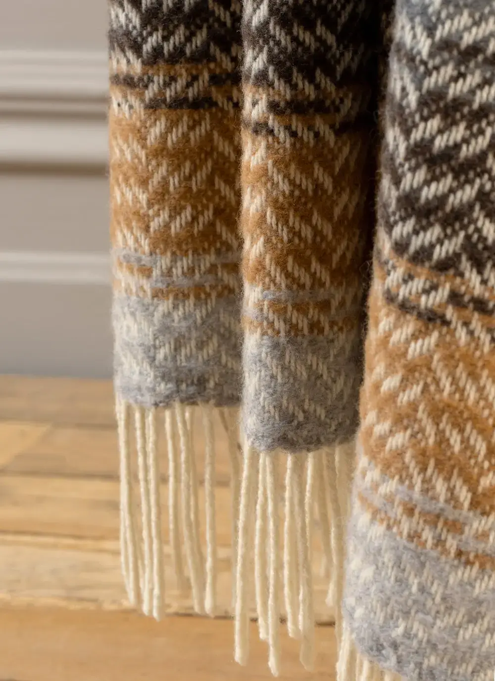 Beige Herringbone Wool Cashmere Throw