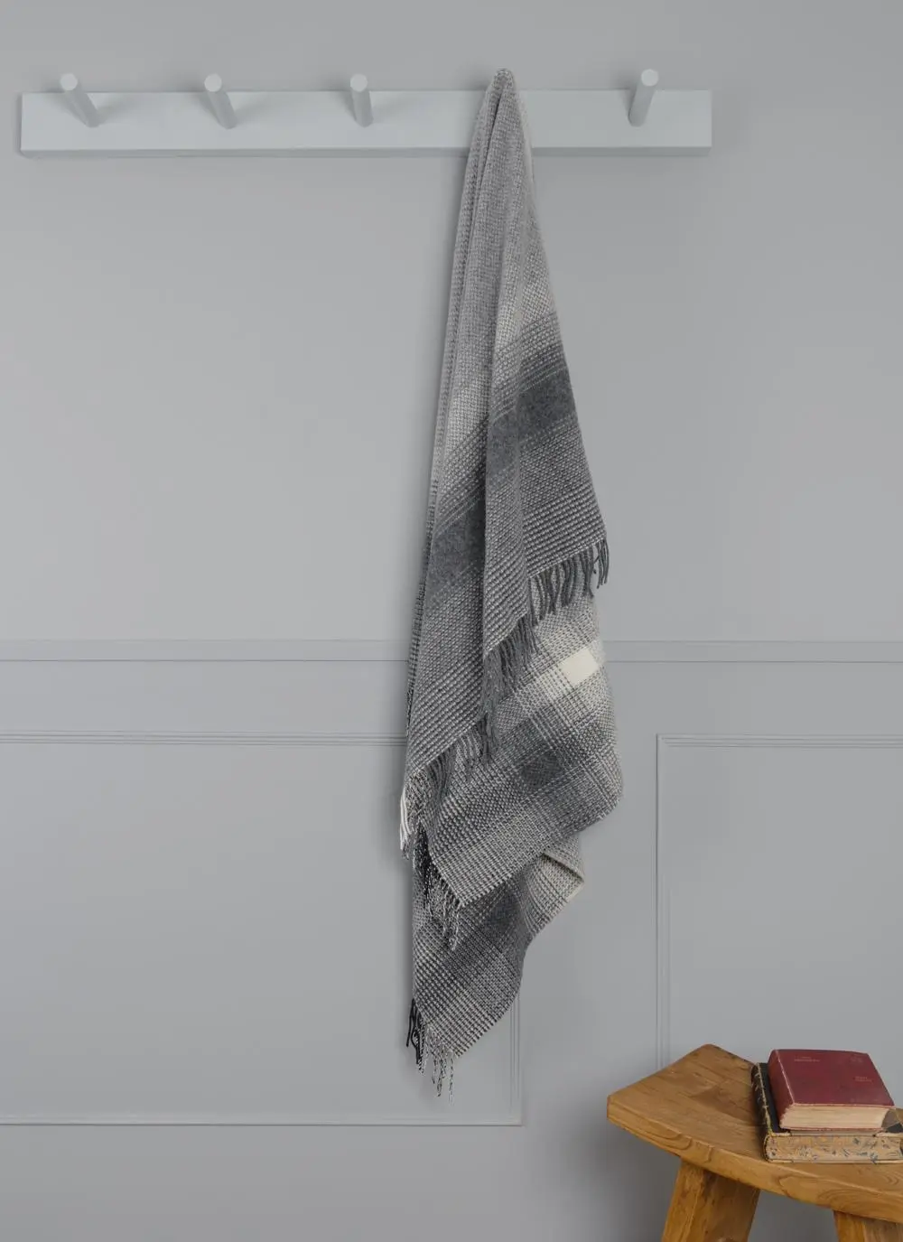 Grey & Cream Herringbone Wool Cashmere Throw